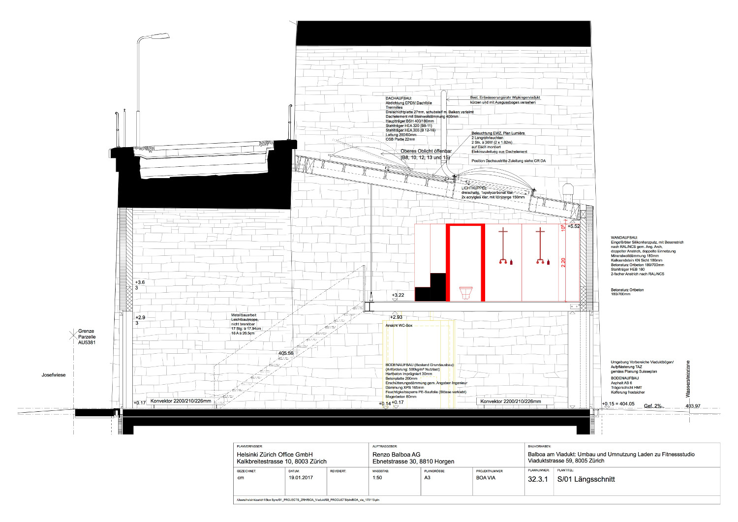 CrossFit heißt der neueste, schweißtreibende Fitnessstudiotrend aus Amerika. Dabei geht es weniger um das herkömmliche, im Wortsinne verstandene Bodybuilding als vielmehr um ein ganzheitliches Training, bei dem sowohl Ausdauer und Kraft als auch Schnelligkeit und Körperbeherrschung geschult werden. Auf komplizierte Trainingsgeräte verzichtet der Sport, stattdessen wird vor allem mit dem Eigengewicht der Kursteilnehmer trainiert. Entsprechend brauchen die Studios erheblich weniger Platz. Das sieht man auch an der neuen Balboa-Filiale in Zürich: Sie kommt mit gerade einmal 160 Quadratmetern auf eineinhalb Geschossen aus. Untergebracht sind die Räume im sogenannten „Viadukt“, einer historischen Eisenbahnbrücke, deren steinerne Bögen 2010 durch das Architekturbüro EM2N geschlossen und für Einzelhandelsflächen nutzbar gemacht wurden. Für die Umgestaltung des Bogens Nummer 14 zum „Balboa im Viadukt“ waren nun wiederum die Architekten Tommi Mäkynen und Mirjam Niemeyer vom Büro Helsinki Zürich verantwortlich, die schon der ersten Balboa-Filiale am Zürcher Schanzen-graben ein Gesicht gaben. Für die Fläche im „Viadukt“ übersetzten Mäkynen und Niemeyer den rauen Charakter des Sportes, der ohne viel Schnickschnack auskommt, in ein authentisches Interieur: Auf der unteren Ebene wird hart trainiert, oben entstanden Duschen, WCs und Umkleiden für „Buebe“ und „Meitli“ aus hartem, galvanisiertem Stahl.
