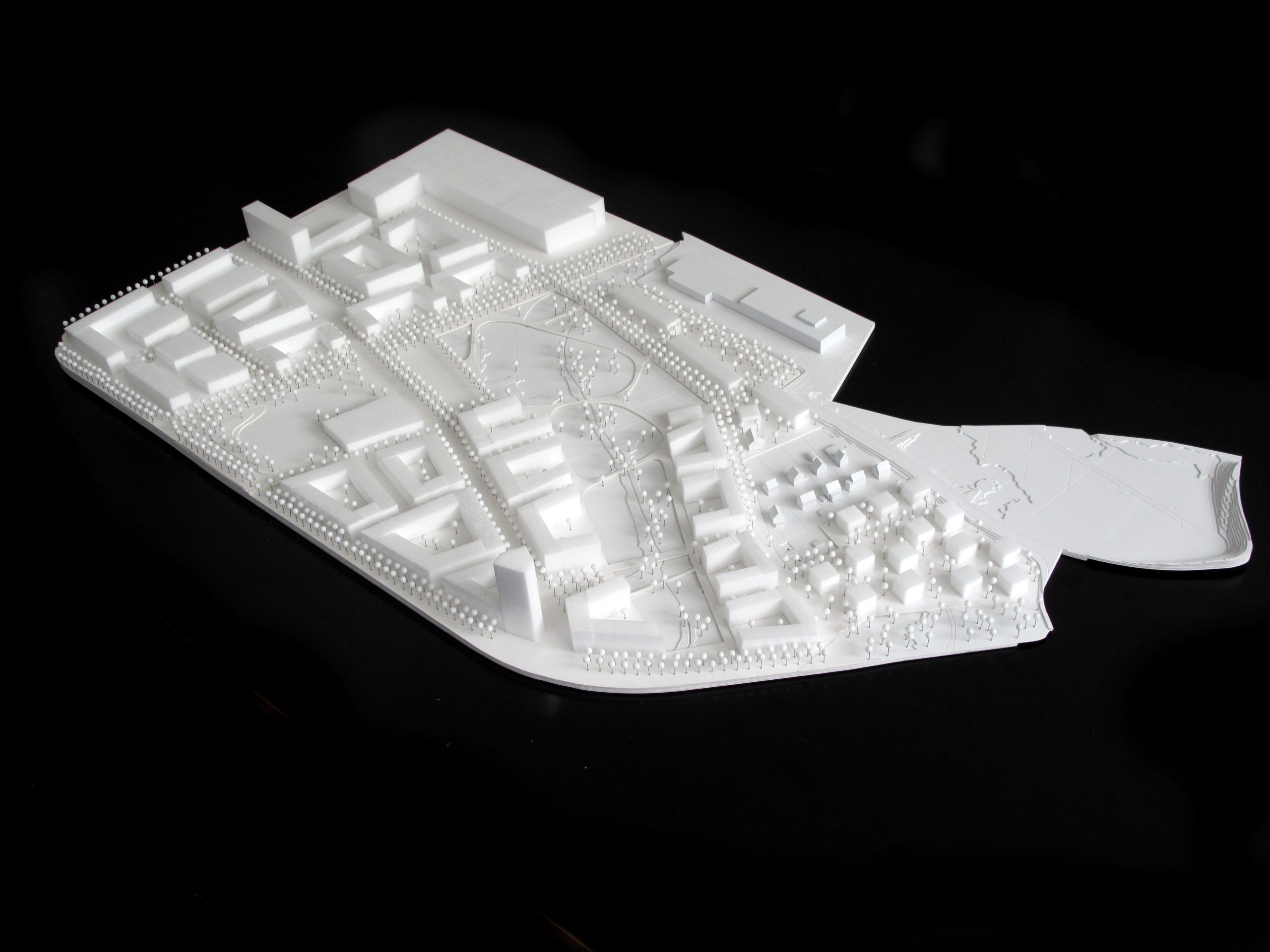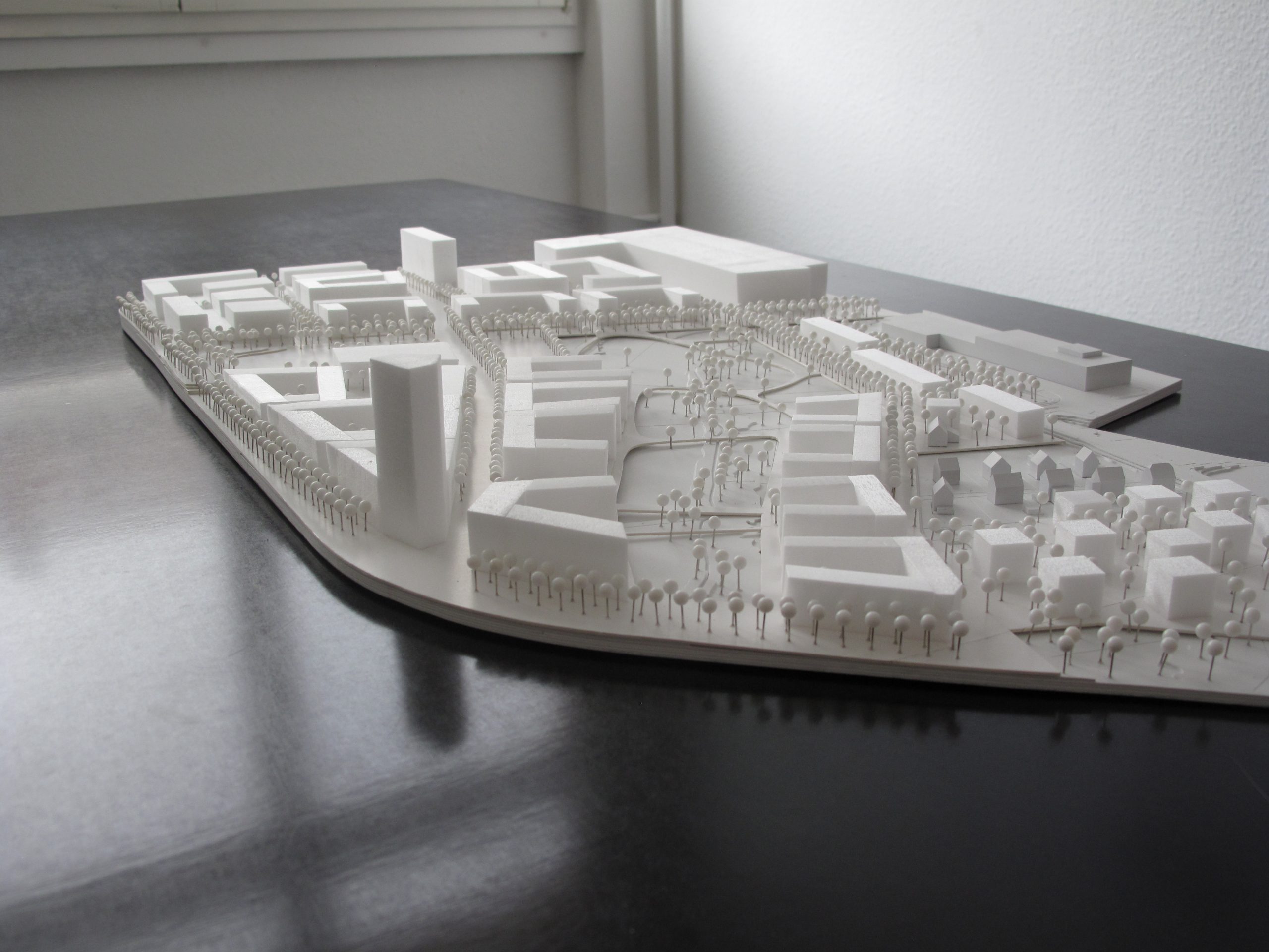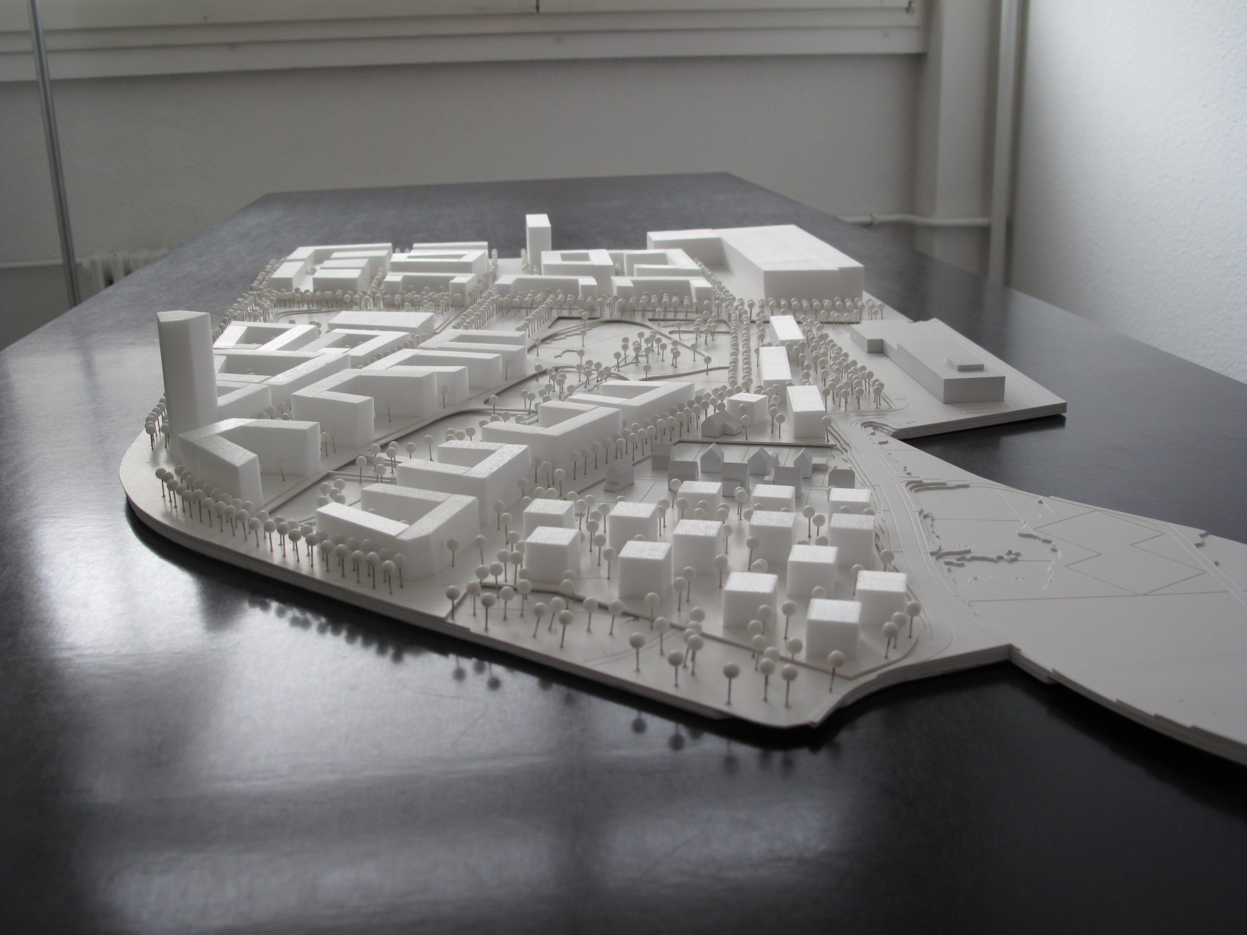 Besonderes Augenmerk liegt auf der Verknüpfung des neuen Quartiers, das von stark trennenden Verkehrsachsen umgeben ist, mit den angrenzenden Stadtquartieren. Das Bebauungskonzept reagiert mit einer entsprechenden Bebauung und Verteilung von Nutzungen auf die starke Lärmbelastung entlang der Verkehrsachsen.